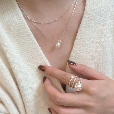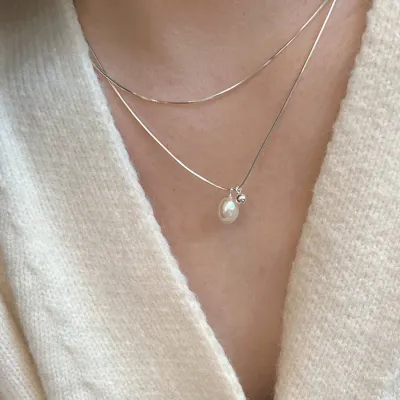 simple style round artificial pearl sterling silver layered necklaces in bulk