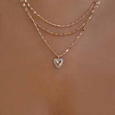 modern style simple style solid color stainless steel plating three-dimensional 18k gold plated women's three layer necklace