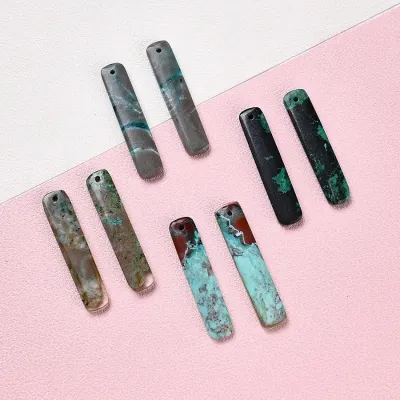1 Pair 48x10mm Hole 2~2.9mm natural stone Color Block Ink Painting Stone Pendant