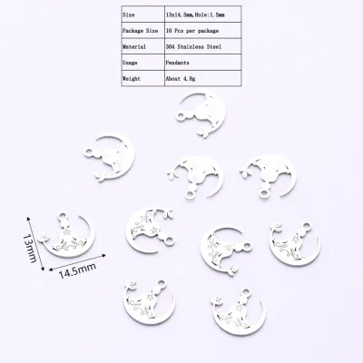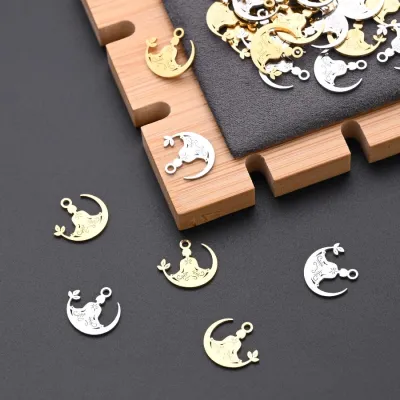 10 PCS/Package 14.5*13mm Hole 1~1.9mm 304 Stainless Steel Gold Plated Moon Yoga Polished Pendant