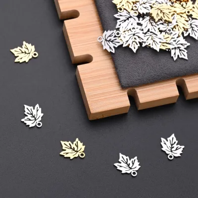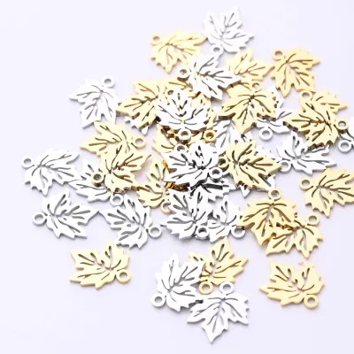 50 PCS/Package 12*13.5mm Hole 1~1.9mm 304 Stainless Steel Gold Plated Maple Leaf Polished Pendant