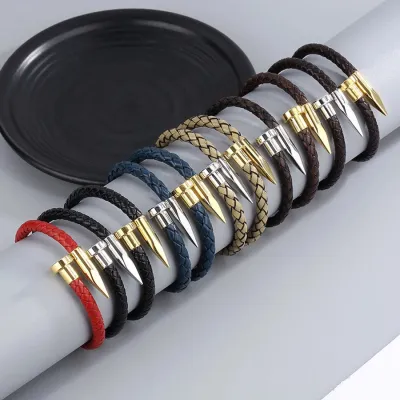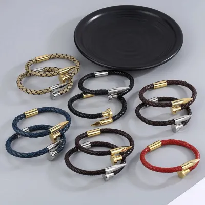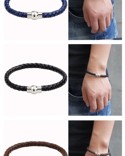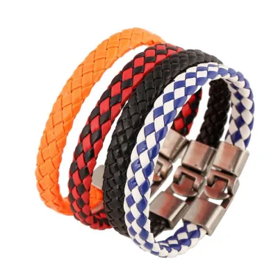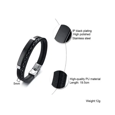 fashion geometric stainless steel pu leather buckle bangle 1 piece