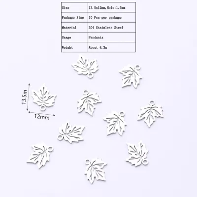 10 PCS/Package 12*13.5mm Hole 1~1.9mm 304 Stainless Steel Gold Plated Maple Leaf Polished Pendant