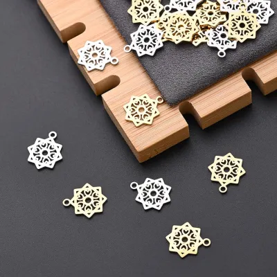 10 PCS/Package 14*12mm Hole 1~1.9mm 304 Stainless Steel Gold Plated Rainbow Leaves Polished Pendant Earring Findings