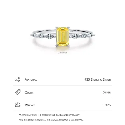 ig style elegant sweet rectangle sterling silver plating inlay zircon rhodium plated rings