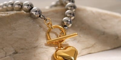 10 PCS/Package 12 * 9mm Hole 1~1.9mm 304 Stainless Steel Gold Plated Letter Heart Shape Polished Connectors